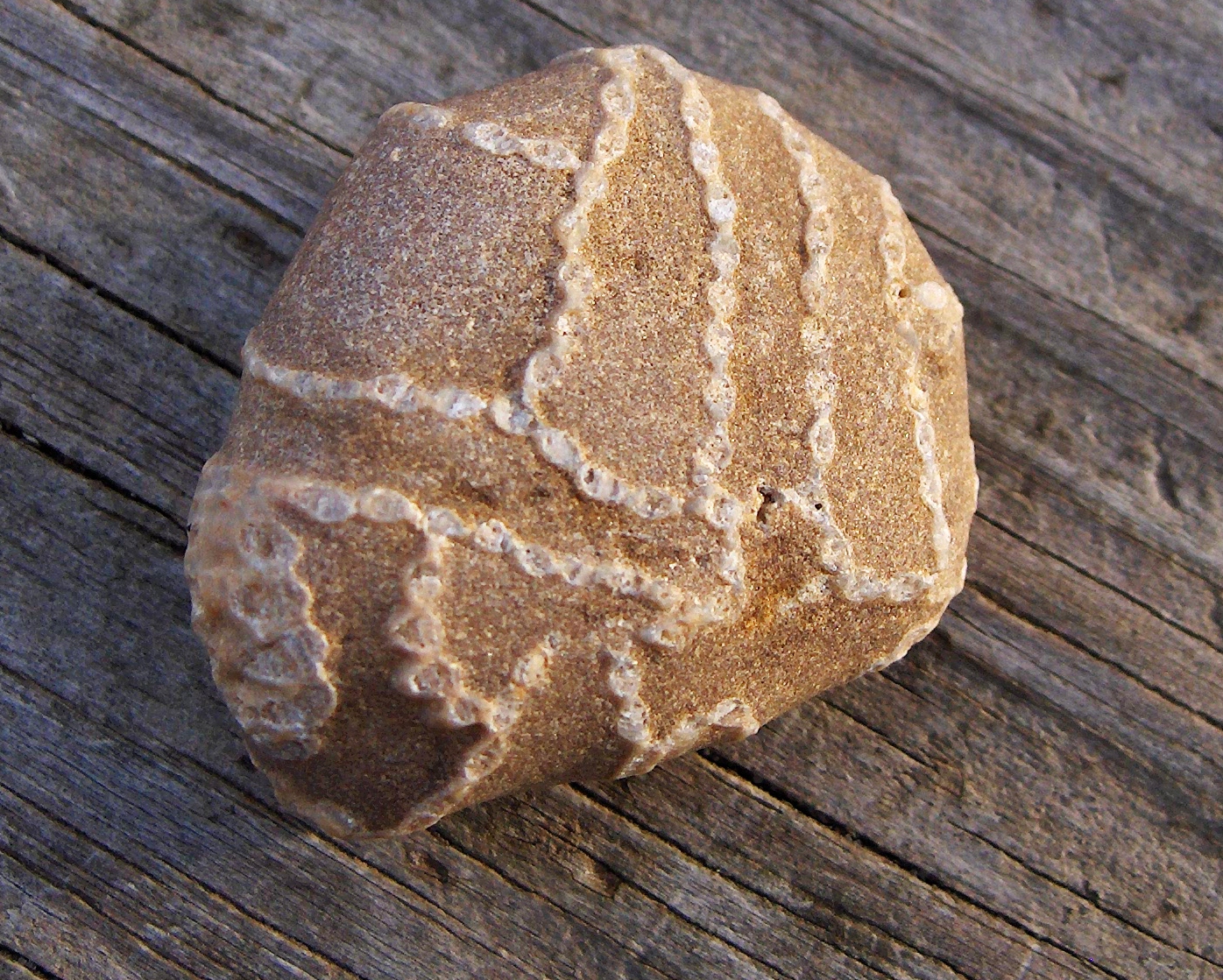 I was super excited to discover several fossils on Oval Beach in Saugatuck, Michigan, USA that are highly unusual to find in winter. The fossil below was lying under deep layers of sand, but luckily, the mild weather with minimal snowfall allowed winter winds to push sand off the under layers. Also contributing to fossil hunting were the low water levels from a long dry spell during the summer of 2012 which produced more beach to explore.