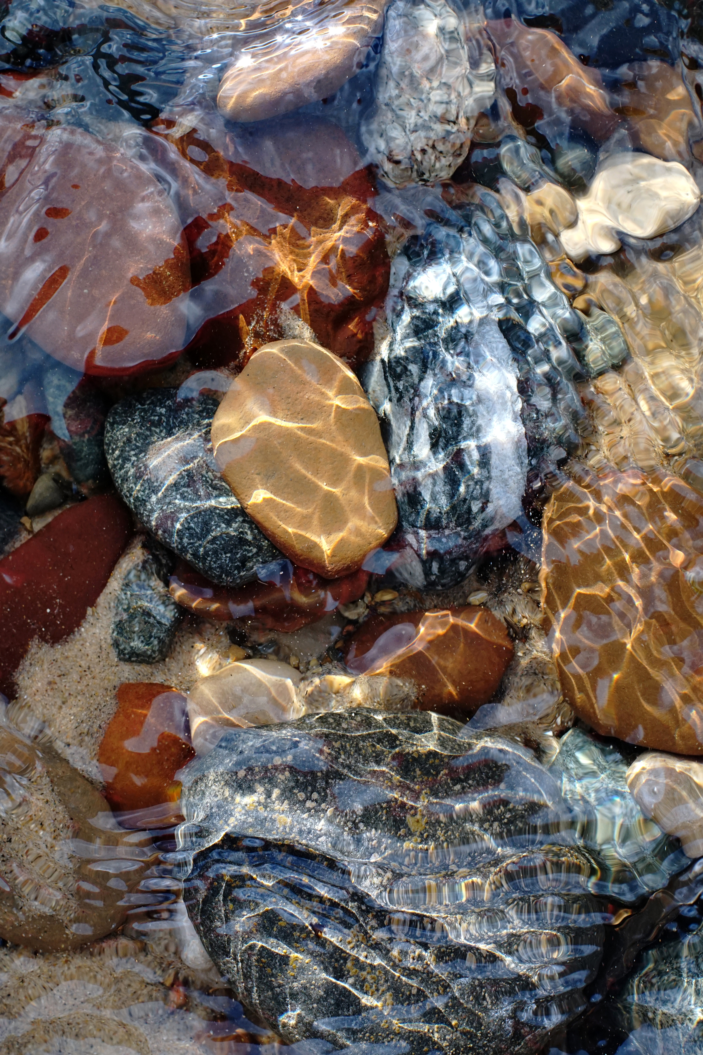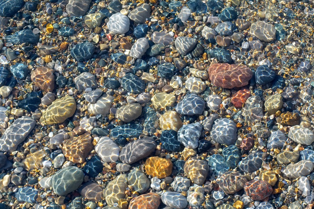 To end, I leave you with a lovely photo of beach stones settled on a creekbed where it flows into the shoreline of Lake Michigan!