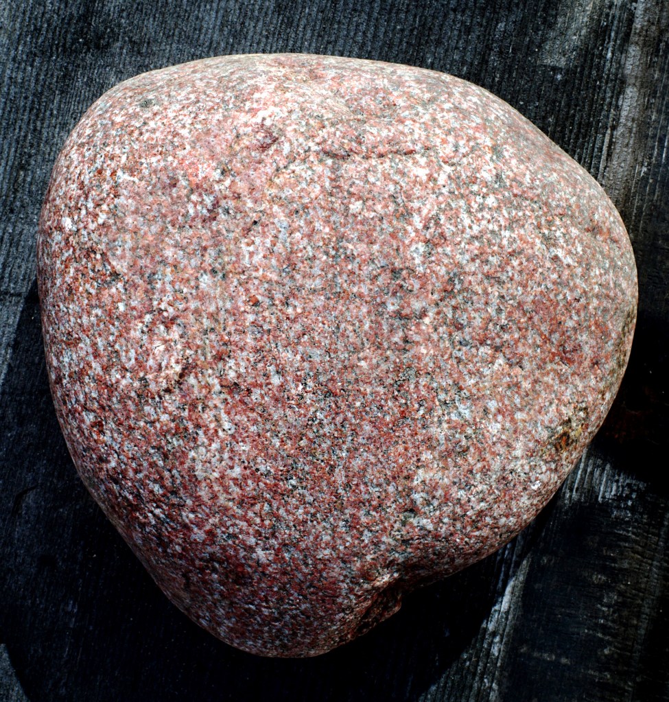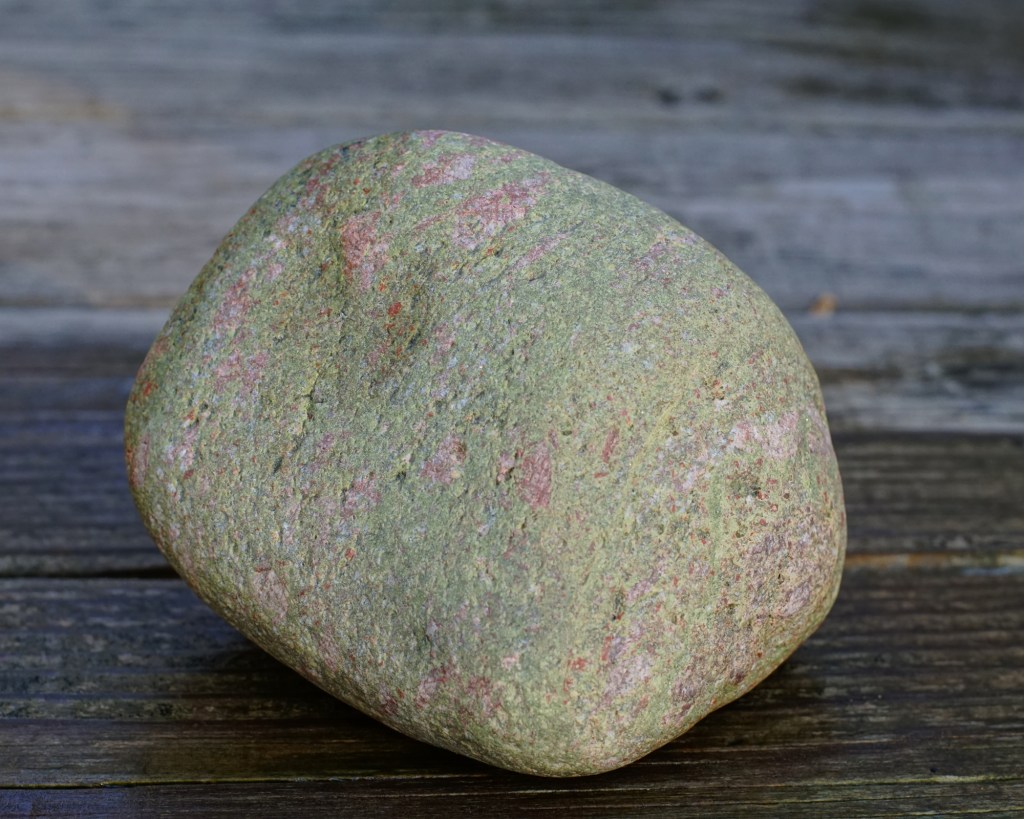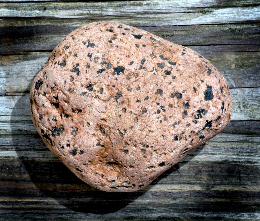 Syenite is not the most common rock found along Lake Michigan beaches so it’s a thrill to find them with their pink and pinkish-orange polk-a-dot patterns! Syenite is occasionally used as a substitute in place of granite for a building material.