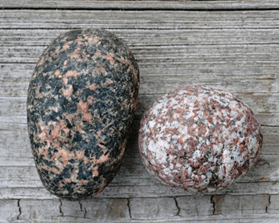 Special Granite – Above, are two samples demonstrating the variances in granite’s colors depending on mineral content. Can you guess their mineral content based on their color?