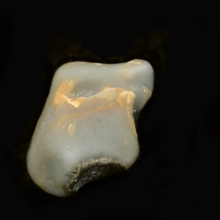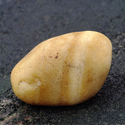 Milky quartz is the most common variety of crystalline quartz (crystals too small to be seen with the naked eye). Several varieties of quartz are microcrystalline These include agate, jasper, chert, chalcedony and more. The cloudiness of milky quartz comes from microscopic inclusions of fluids, gas, or both that have been encased in the crystal from the time the crystal first grew. The inclusions have spoiled the crystal for optical purposes and for the use in jewelry-making gemstones. Holding the milky quartz up to the sun, the light can be seen through the translucence of this stone. We find these quite often and in a rounded, polished form due to the weathering action of the beach windblown sand.